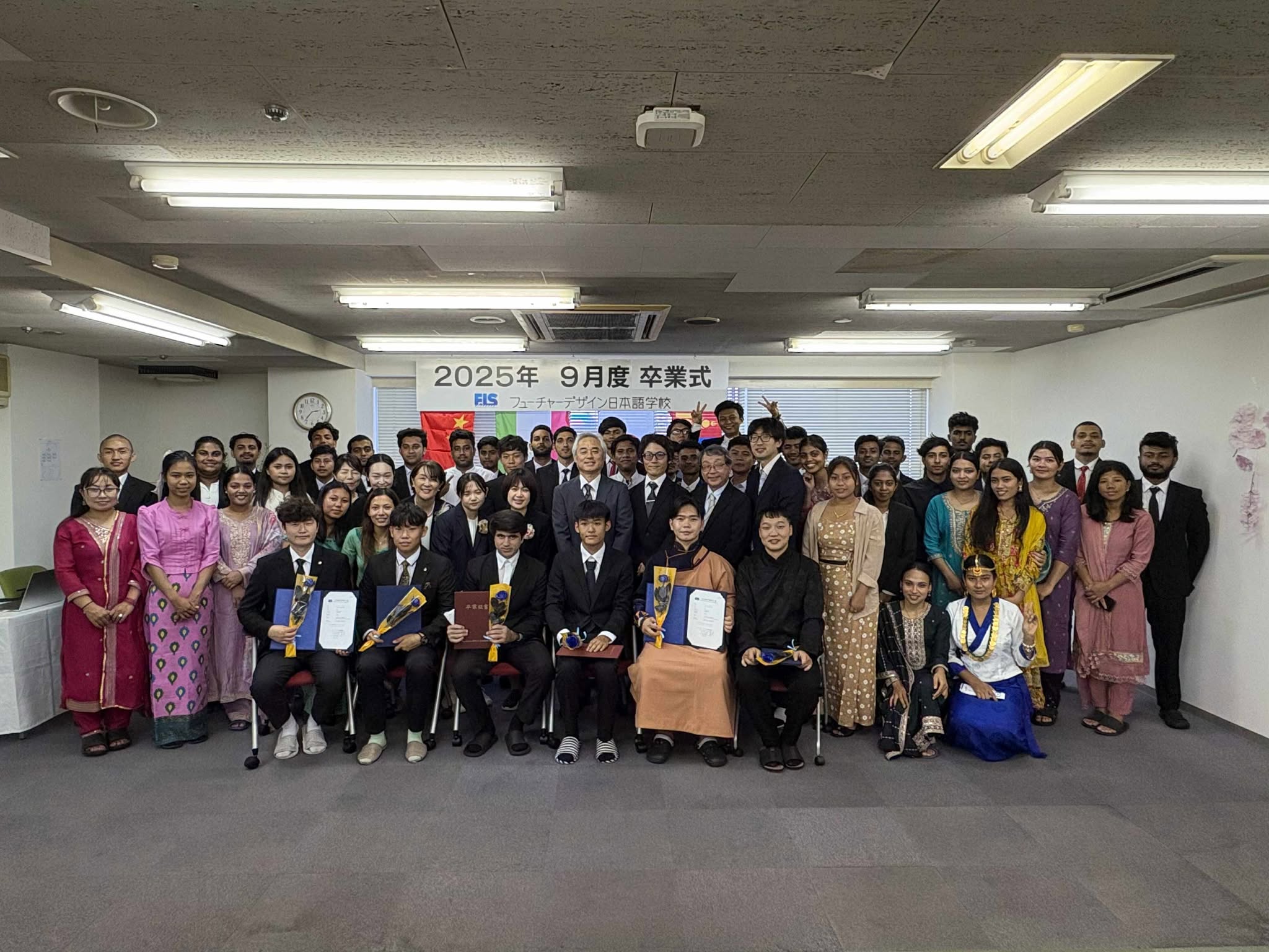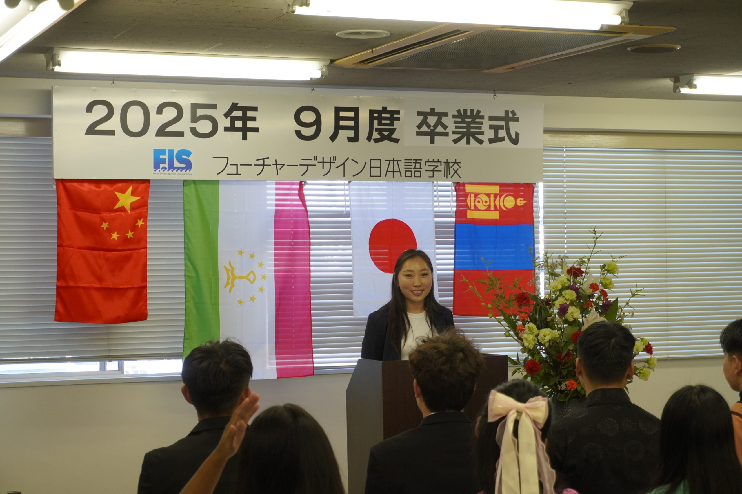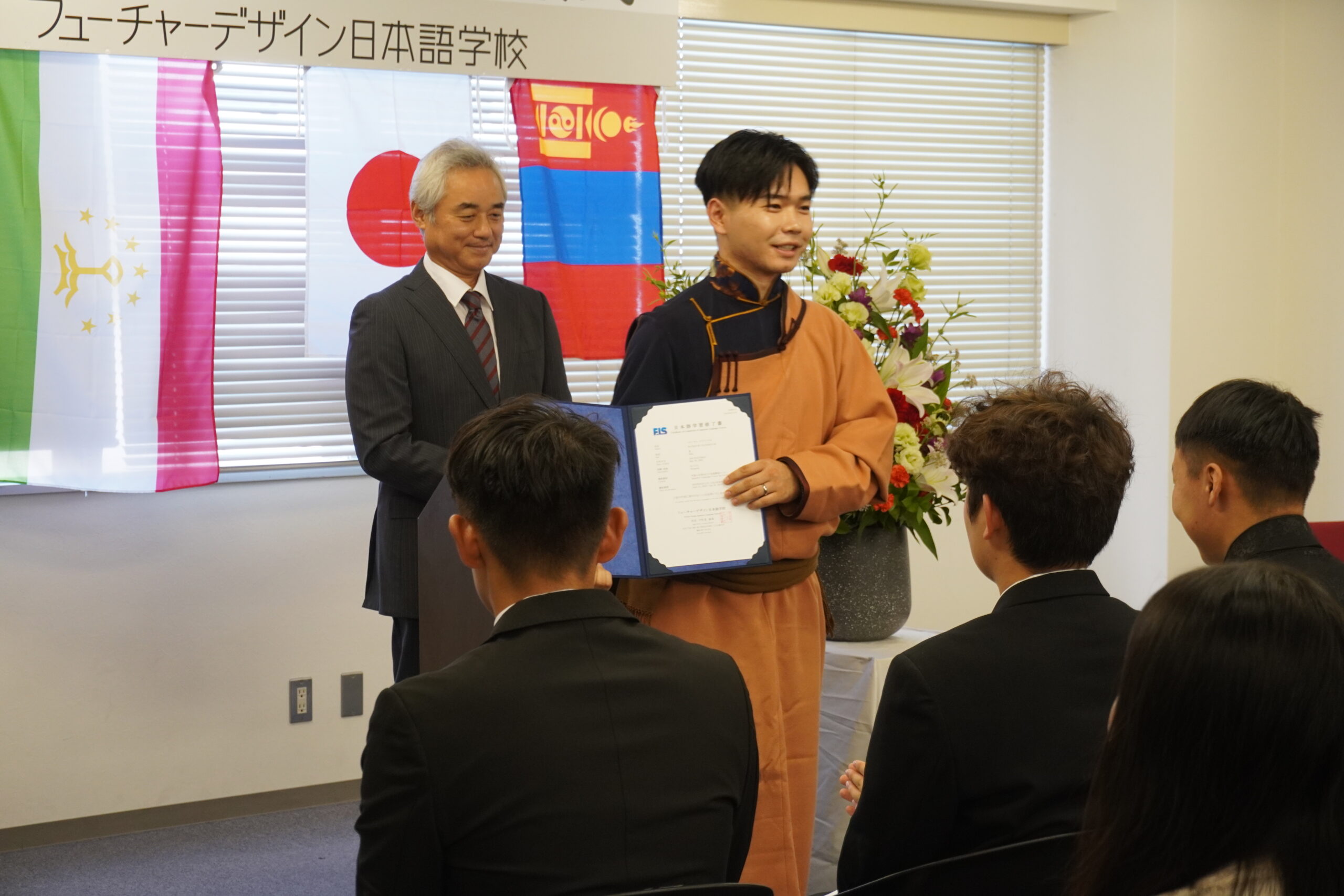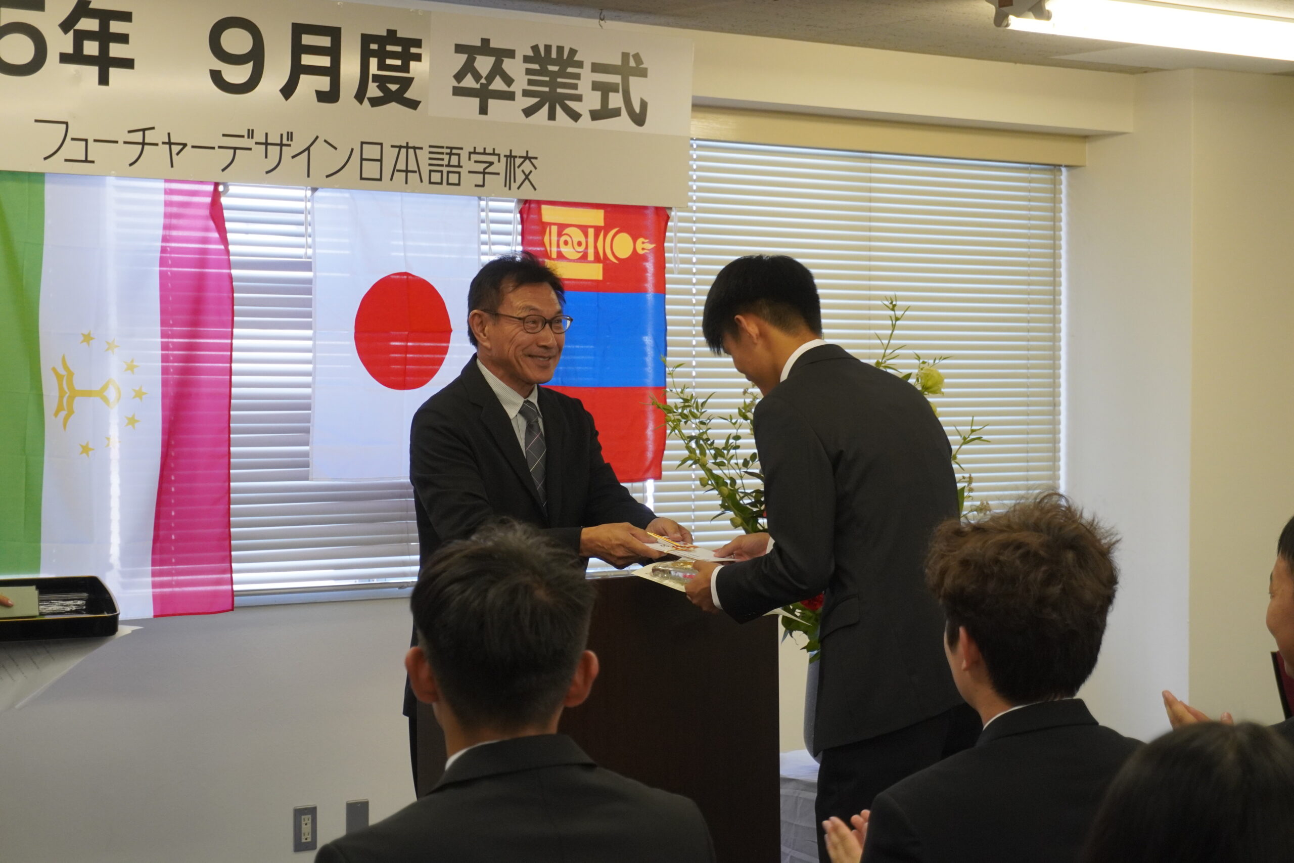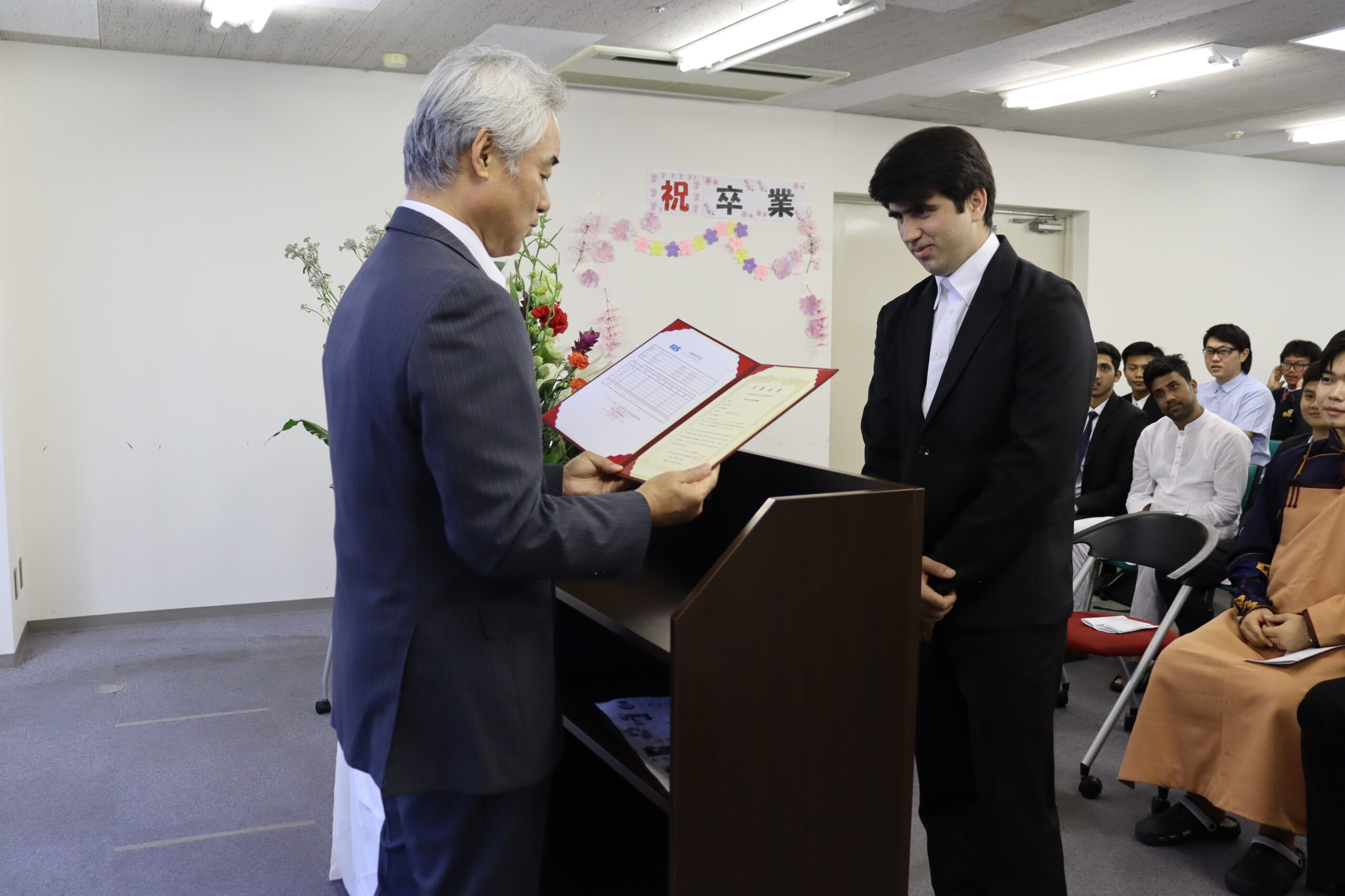 卒業生は2名(中国1名、タジキスタン1名)、また外国人社員向け日本語課程コースの修了生4名を含め、計6名が新たな門出を迎えました。