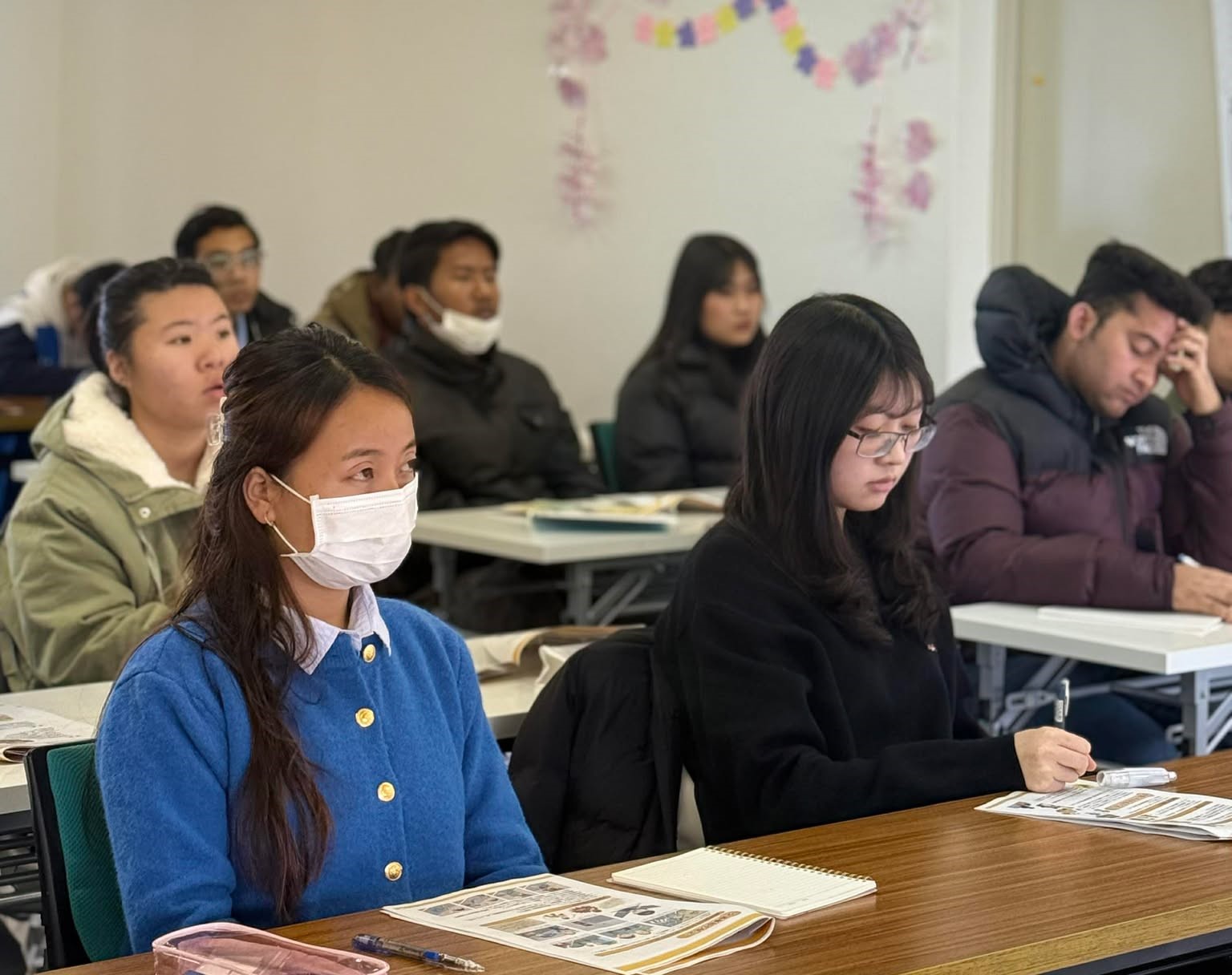 日本と母国との交通ルールの違いについて具体的な説明があり、学生たちは実際の生活をイメージしながら、最後まで真剣に話を聞いていました。台湾出身の新入生からは、「詳しく教えていただき、ありがとうございます。台湾と違うところが多く、ルールがよく分かりました。」という感想もあり、日本での生活を始めるための大切な学びの機会となりました。